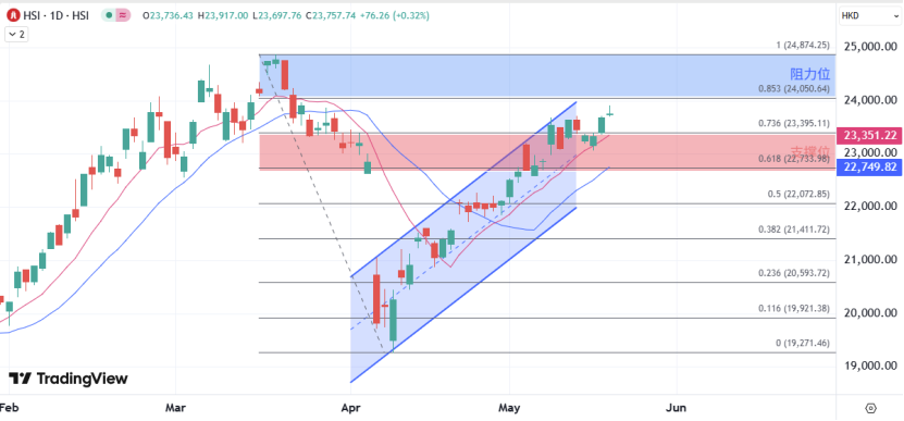 ATFX港股:今日恒指高开54点后升幅扩大,半日升125点或0.5%创富配资,报23,807点;国指升58点或0.7%,报8,647点;恒生科技指数升22点或0.4%,报5,338点。港股午后升幅略为扩大至逾200点,突破早市高位,向上挑战24000关口。